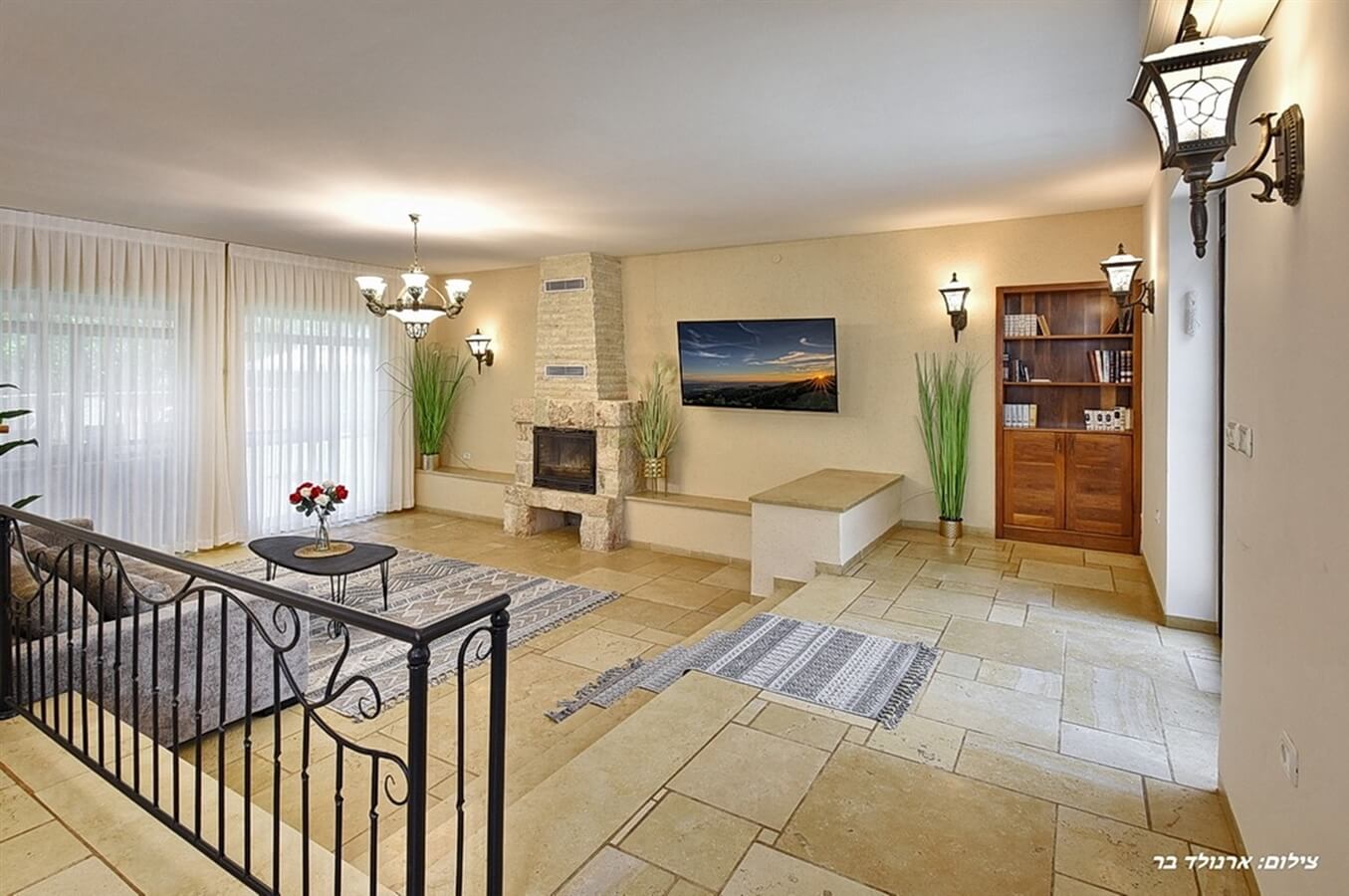 - סלון גדול עם פינת ישיבה נוחה וטלוויזיה עם חיבור לערוצי כבלים