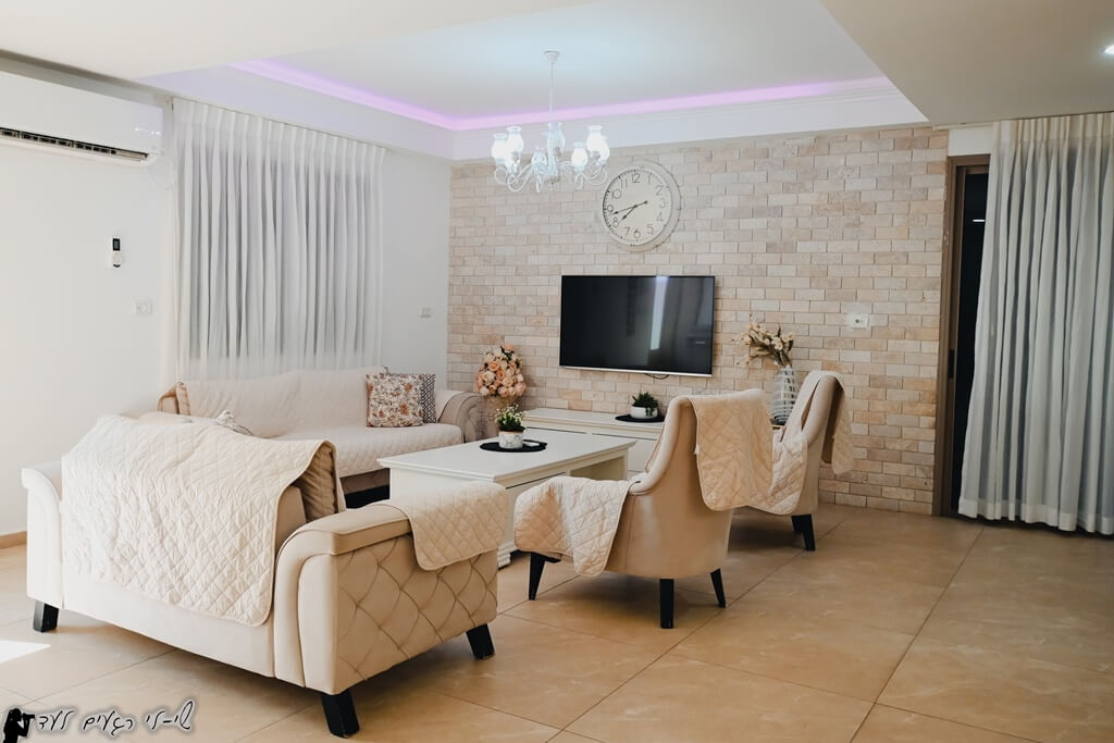 - סלון עם פינת ישיבה גדולה + טלוויזיה חכמה בחיבור לכבלים