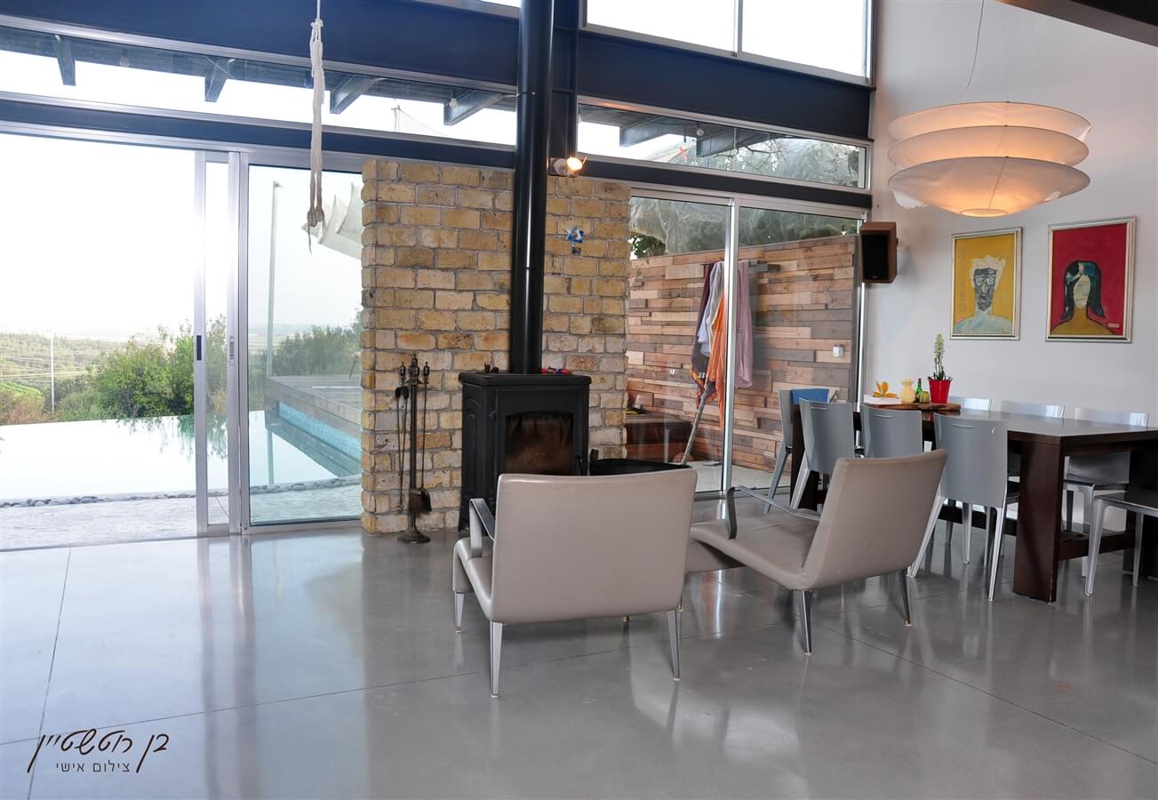 בסלון הוילה עיצוב מודרני ומושקע עם פינת ישיבה משפחתית, טלוויזיה עם חיבור לכבלים, קמין לחימום בימים הקרים, פינת אוכל משפחתית ומטבח הכולל אי במרכזו, מקרר גדול, כיריים, 2 כיורים, טוסטר, מסחטת מיצים, פינת קפה, כלי אוכל ובישול ועוד.