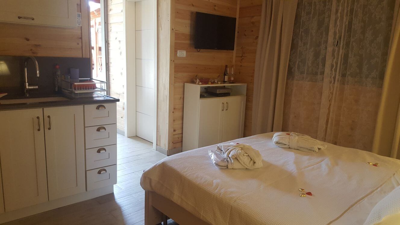 במתחם האירוח מיני וילה המתאימה לעד 10 אורחים וכוללת 3 חדרי שינה ממוזגים (אחד מתוכם עם כניסה נפרדת) המתאימים ל- 3 זוגות + 5 ילדים או למשפחות גדולות של עד 10 נפשות. הוילה כוללת: פינת ישיבה עם טלויזיה בלווין ומכשיר dvd, פינת אוכל, לכל חדר מקלחת ושירותים צמודים, טלויזיה בלווין ו-dvd. מטבח הוילה מיועד לבישול ומאובזר בתנור אפייה, גז, מיקרוגל, מקרר גדול, כלי אוכל וכלי בישול. למיני וילה ג'קוזי ספא פרטי בחוץ ל-8 אנשים. לציבור הדתי: פלטת שבת, מייחם ושעון שבת.
