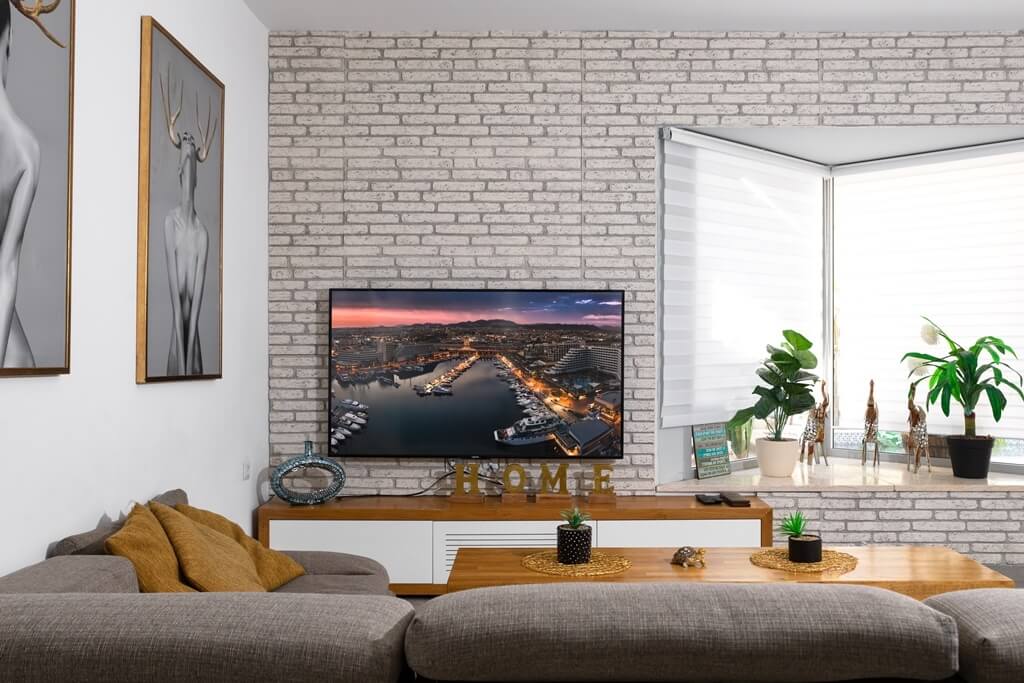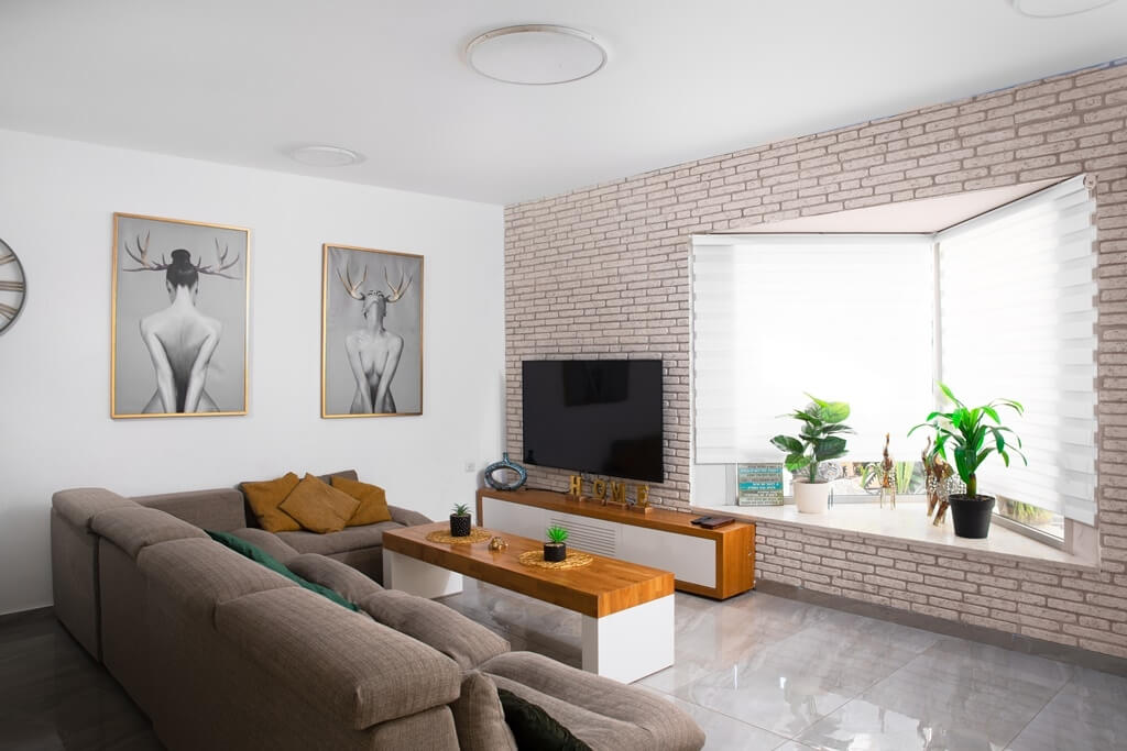 - סלון עם ספה ענקית ונוחה מול טלוויזיה בחיבור לכבלים ונטפליקס