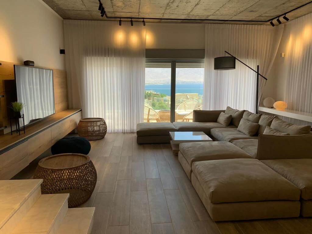 - סלון יוקרתי עם טלוויזיה בכבלים וחיבור לנטפליקס עם יציאה למרפסת שמש