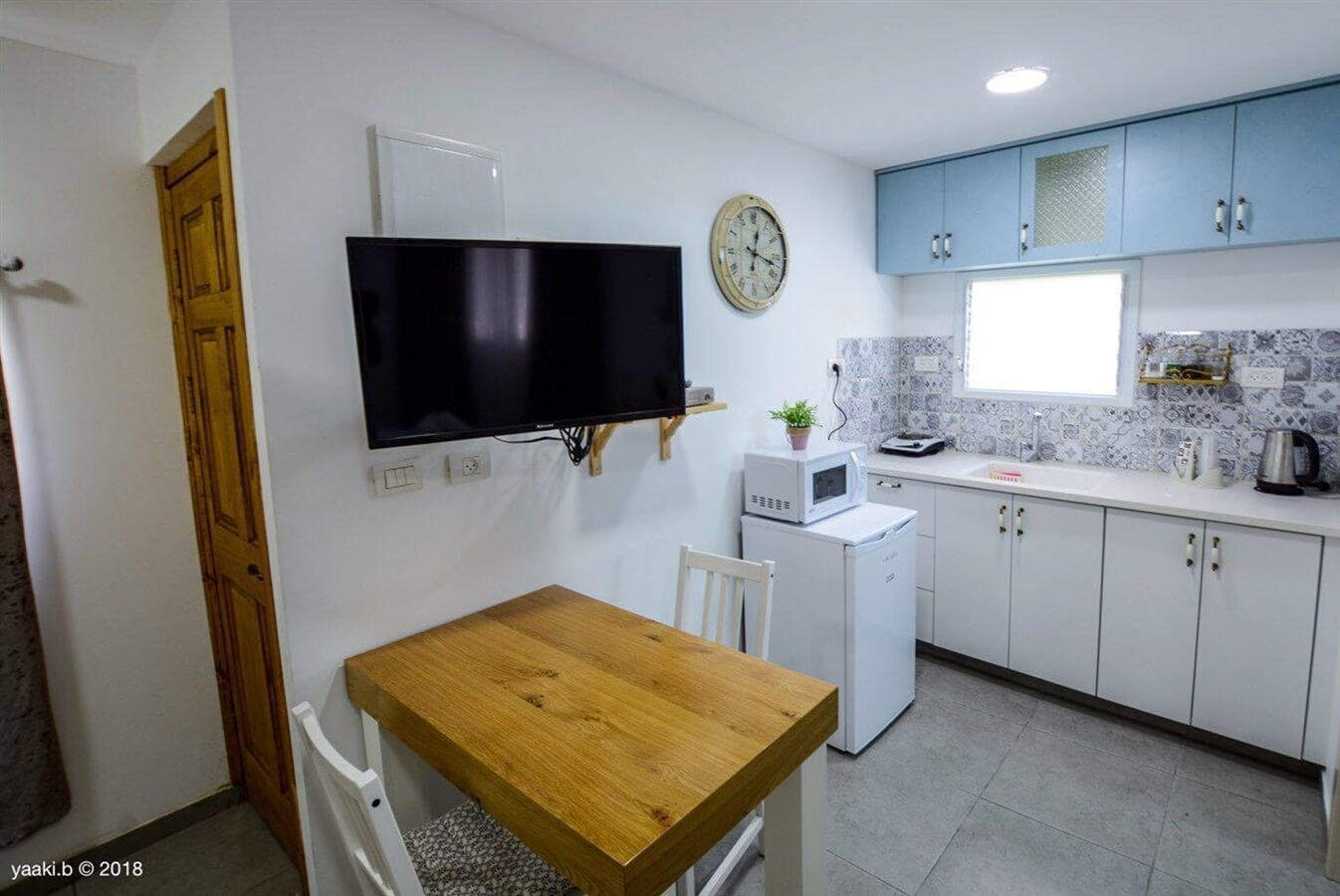 - מטבח המאובזר במקרר, כירה חשמלית, מיקרוגל, פינת קפה וכלי בישול והגשה.