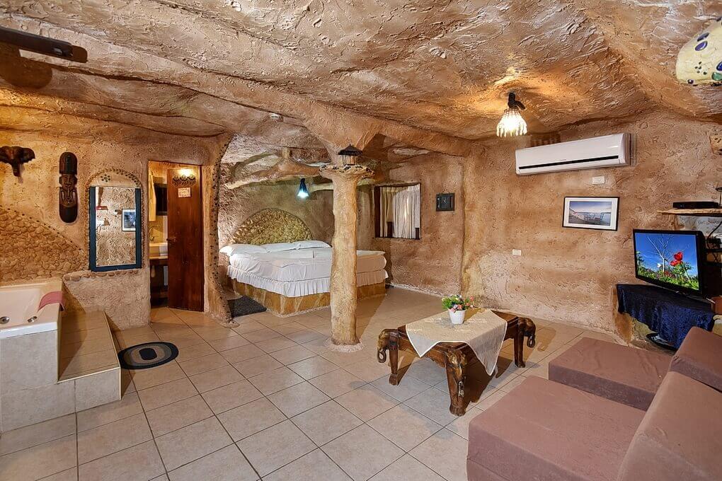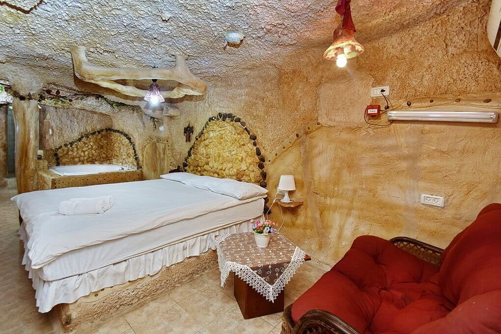 סוויטה ממוזגת המיועדת לאירוח משפחות וזוגות, כוללת: מיטה זוגית נוחה, ג'קוזי מפנק, פינת ישיבה עם מסך lcd בחיבור ללווין ומטבחון המאובזר במיני בר, מיקרוגל, קומקום ופינת קפה.