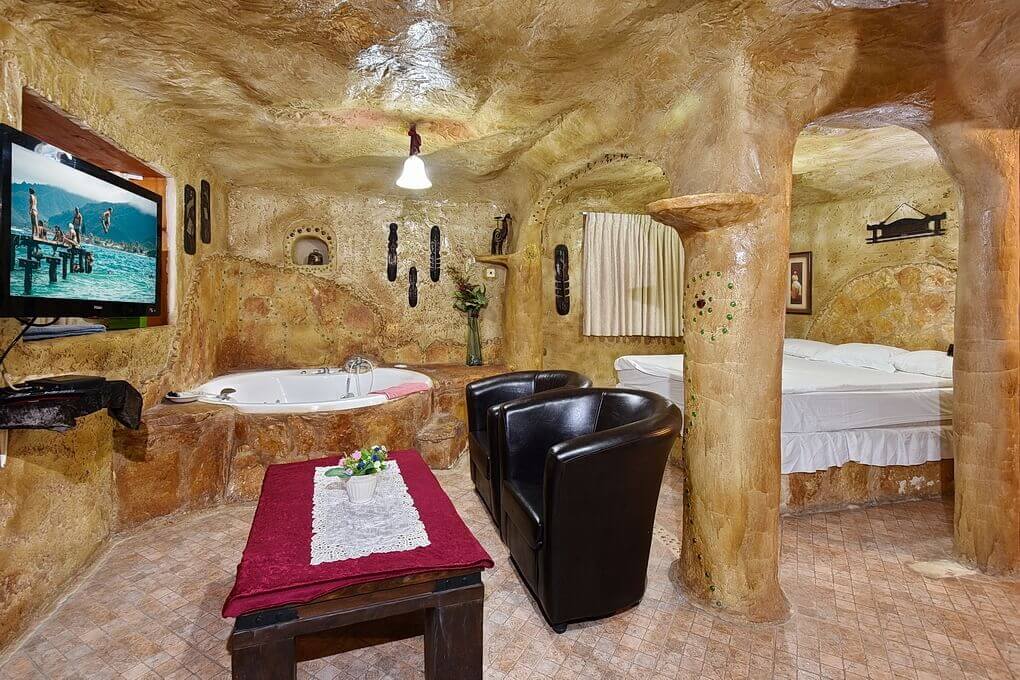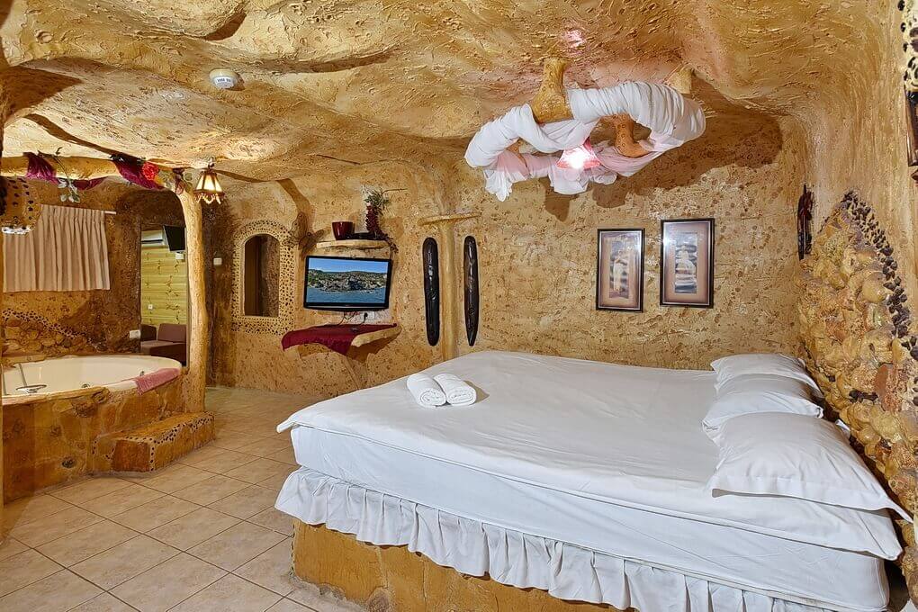 מיטה זוגית, ג'קוזי פרטי, טלוויזיה, פינות ישיבה ומטבחון המאובזר במקרר, מיקרוגל, קומקום חשמלי ופינת קפה. כל סוויטה מעוצבת בסגנון אחר והושקעה בכל אחת מהן מחשבה רבה על מנת לספק לכם חופשה מרגיעה ומושלמת.