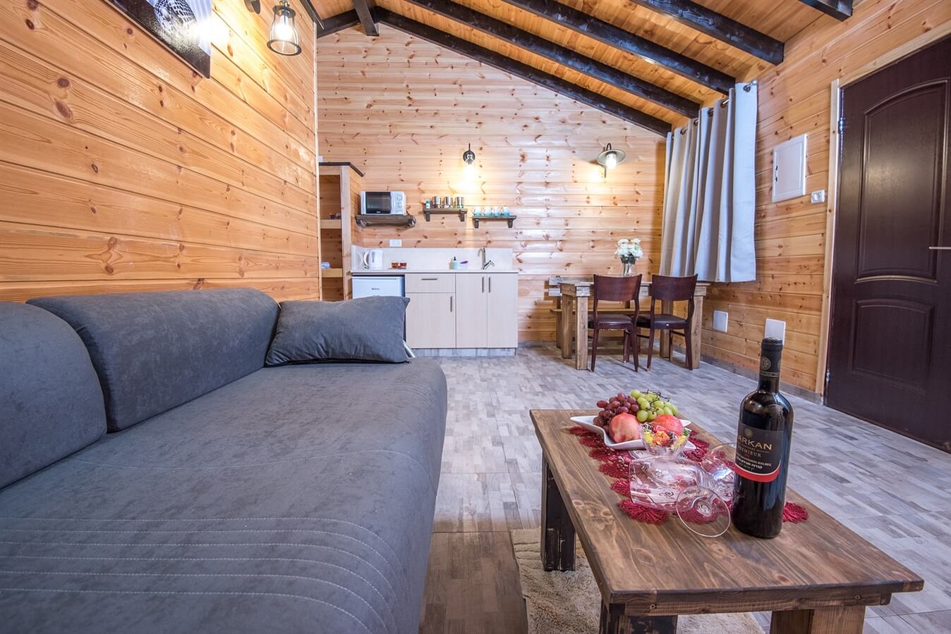 כל סוויטה מכילה חדר שינה פרטי + חלל אירוח מרכזי, מעוצבת בסטייל כפרי אותנטי ומאובזרת במלואה: