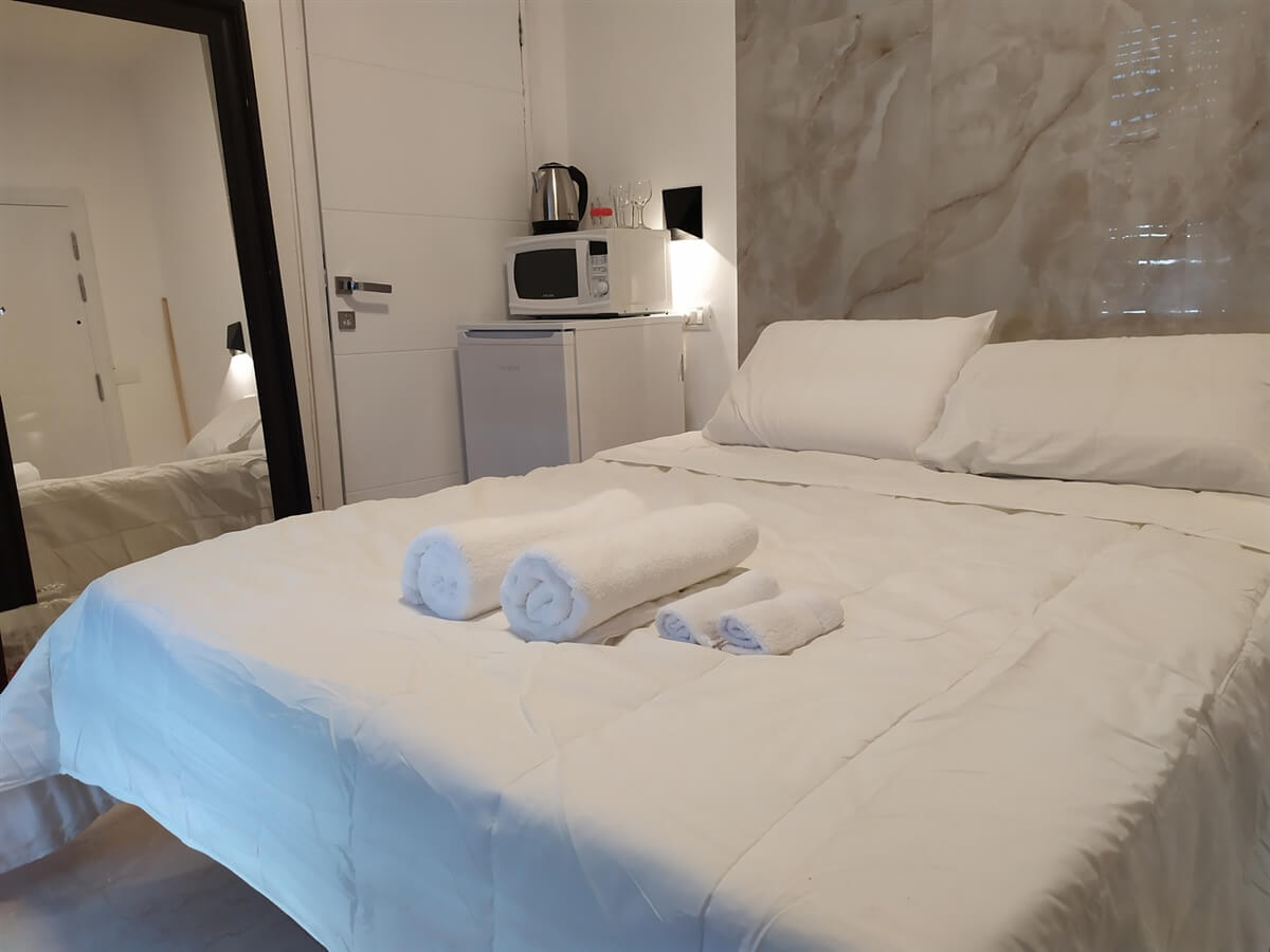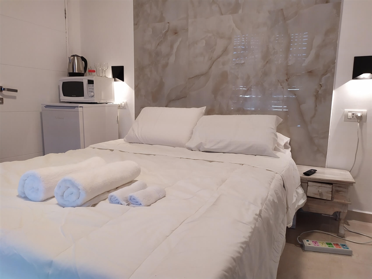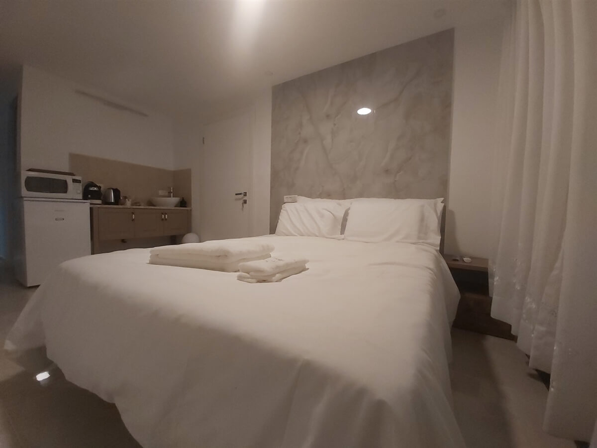 חדר אירוח זוגי עם מיטה זוגית, מטבחון ובו מכונת קפה, מיקרו, קומקום ומקרר, חדר רחצה מאובזר, מיזוג אוויר, טלוויזיה ואינטרנט חופשי.