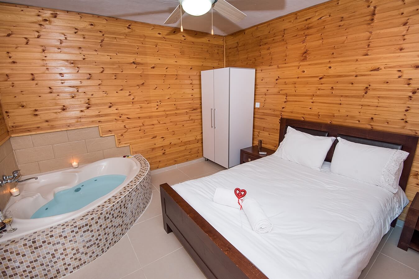 יחידה המתאימה לאירוח של עד זוג + 2 ילדים, מעוצבת כחלל פתוח ומציעה מיטה זוגית, ג'קוזי ספא, פינת אוכל, פינה סלונית, טלוויזיה בחיבור לכבלים, חדר רחצה עם תמרוקים ומטבח המצויד במקרר, כיריים, מיקרוגל ופינת קפה ומרפסת נעימה עם פינת ישיבה.