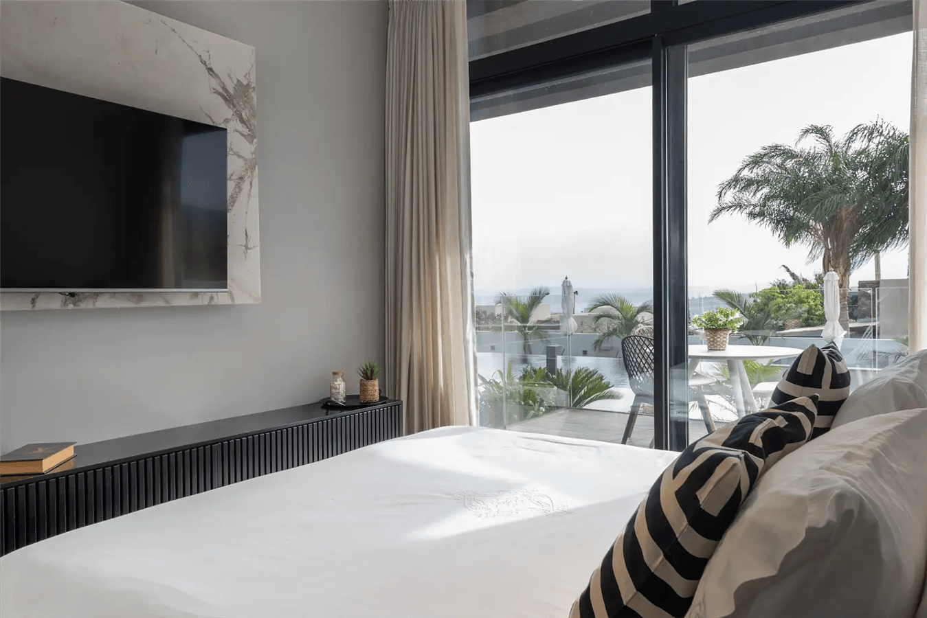 • חלל עם מיטה זוגית נוחה וטלוויזיה חכמה