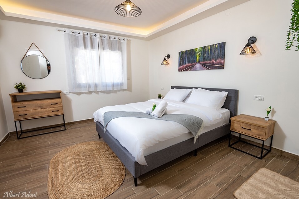 - חדר שינה להורים עם מיטה זוגית מרווחת + ג'קוזי גדול ואינטימי