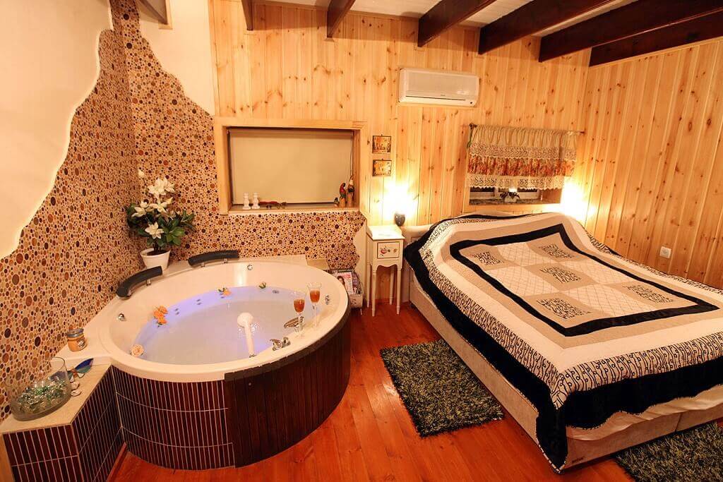 אירוח מופלא לזוגות ומשפחות בבקתת עץ חמימה ומפנקת, בה תיהנו מאווירה כפרית ומריהוט ואבזור איכותי שנבחרו בקפידה: