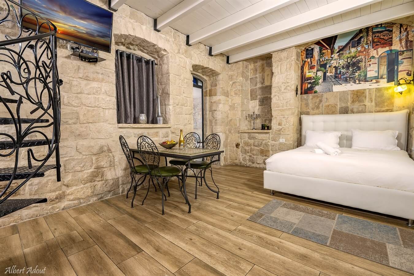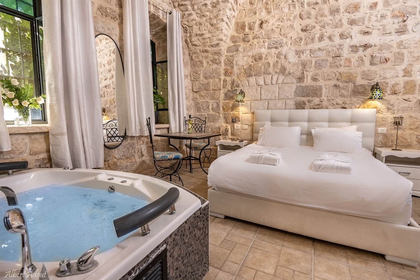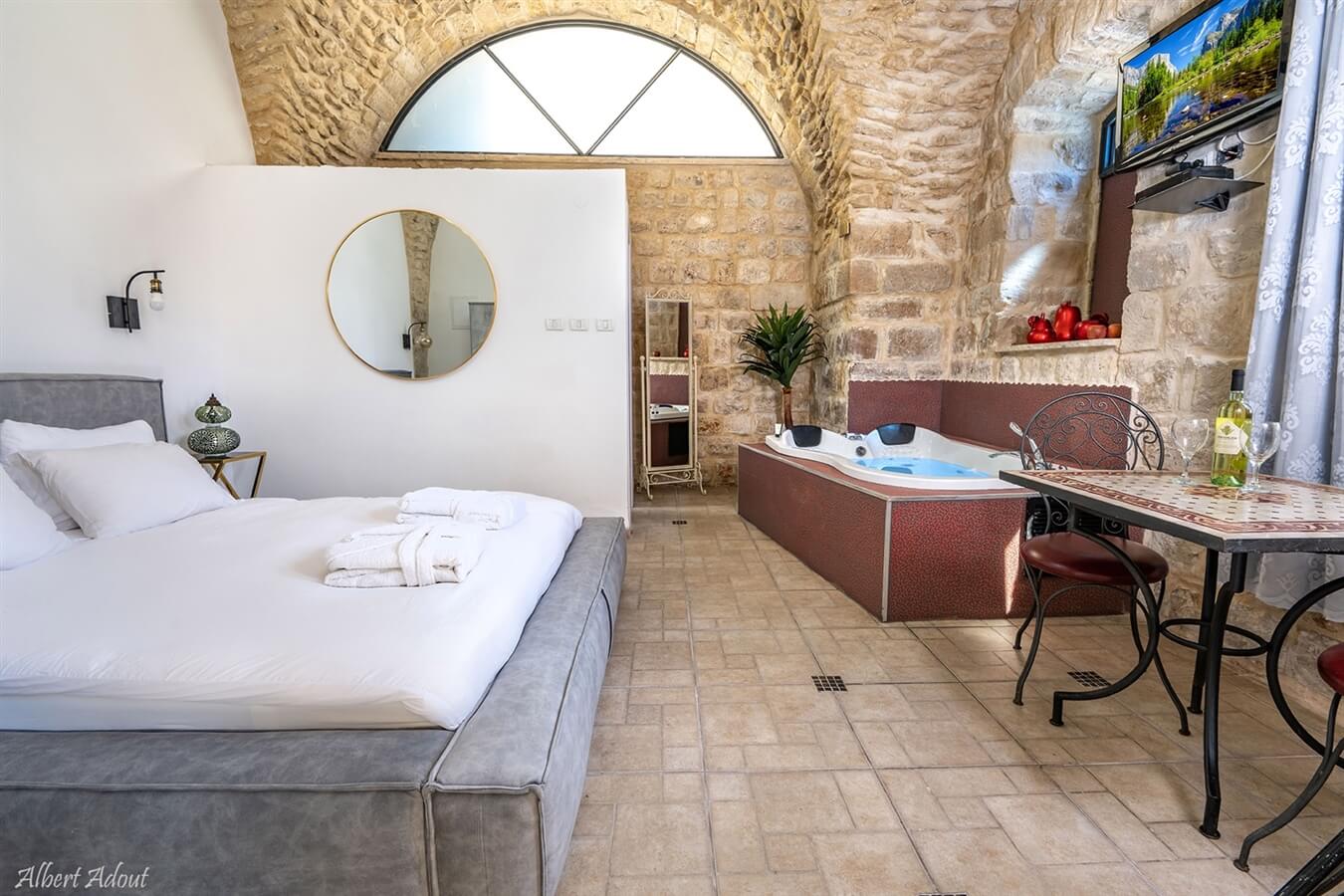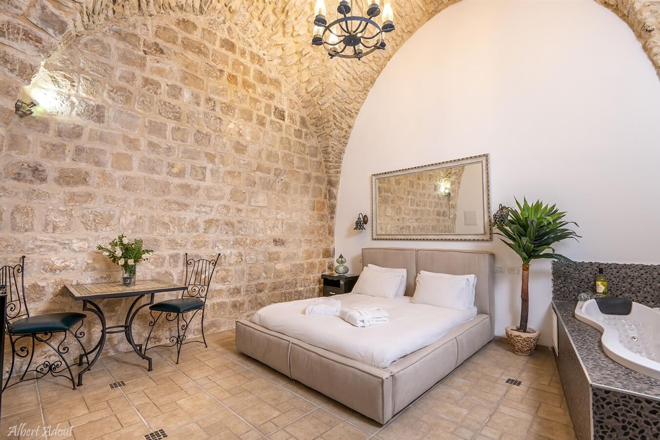 סוויטת אבן מסוגננת לנופש זוגי / לזוג עם ילד. הסוויטה כוללת ג׳קוזי מפנק, מיטה זוגית איכותית, מזרן אורטופדי, חדד רחצה מרענן, תחליבי אמבט, פינת ישיבה זוגית, ערכת קפה ותה, מיניבר וטלוויזיית lcd בכבלים.