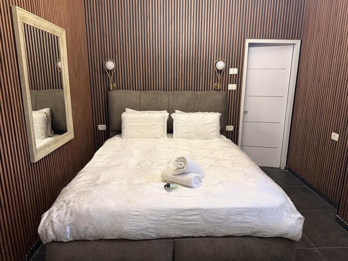 סוויטה זוגית מסוגננת המציעה מיטה זוגית יוקרתית ונוחה עם מצעים איכותיים ומזרן אורטופדי, מסך lcd, חיבור לכבלים, חדר רחצה נעים, תחליבים ריחניים, פינת ישיבה ומטבחון מאובזר עם מקרר גדול, מיקרוגל, קומקום חשמלי ופינת קפה.