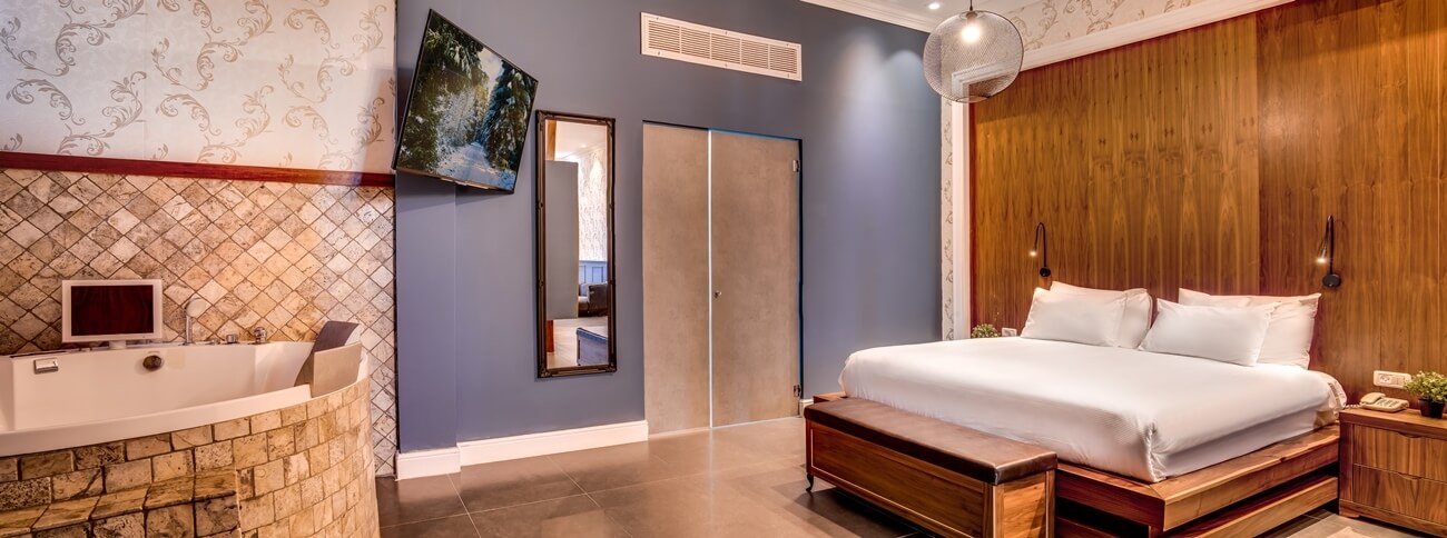 כל הסוויטות מאובזרות היטב וזהות לחלוטין, הן שקטות, נעימות ומרווחות ובהן תמצאו מיטה זוגית, ג'קוזי, ספות נפתחות, סלון עם פינות ישיבה, מיזוג אוויר, כספת, מיני בר, מכונת אספרסו, אינטרנט חופשי, טלוויזיה עם לווין, כפכפים אישיים, חלוקים, מקלחון בחדר הרחצה המפנק עם סבונים ריחניים.