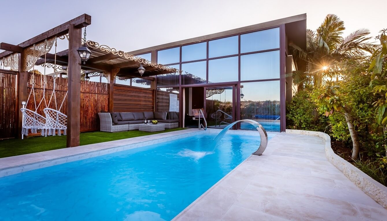 - אקווה פול: מתאימה לאירוח של זוג + 2 ילדים (מגיל 10 בלבד), כוללת ג'קוזי בפנים הסוויטה ומתחם החוץ עם בריכה ופינות ישיבה נפרדות