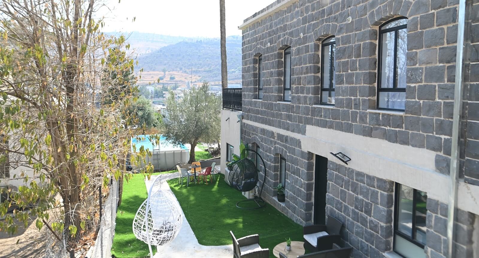 בחוץ תוכלו ליהנות מפינות ישיבה לצד ערסלים ובריכה המשותפת לכל הסוויטות, והכל אל מול נוף מדהים להרים וטבריה.