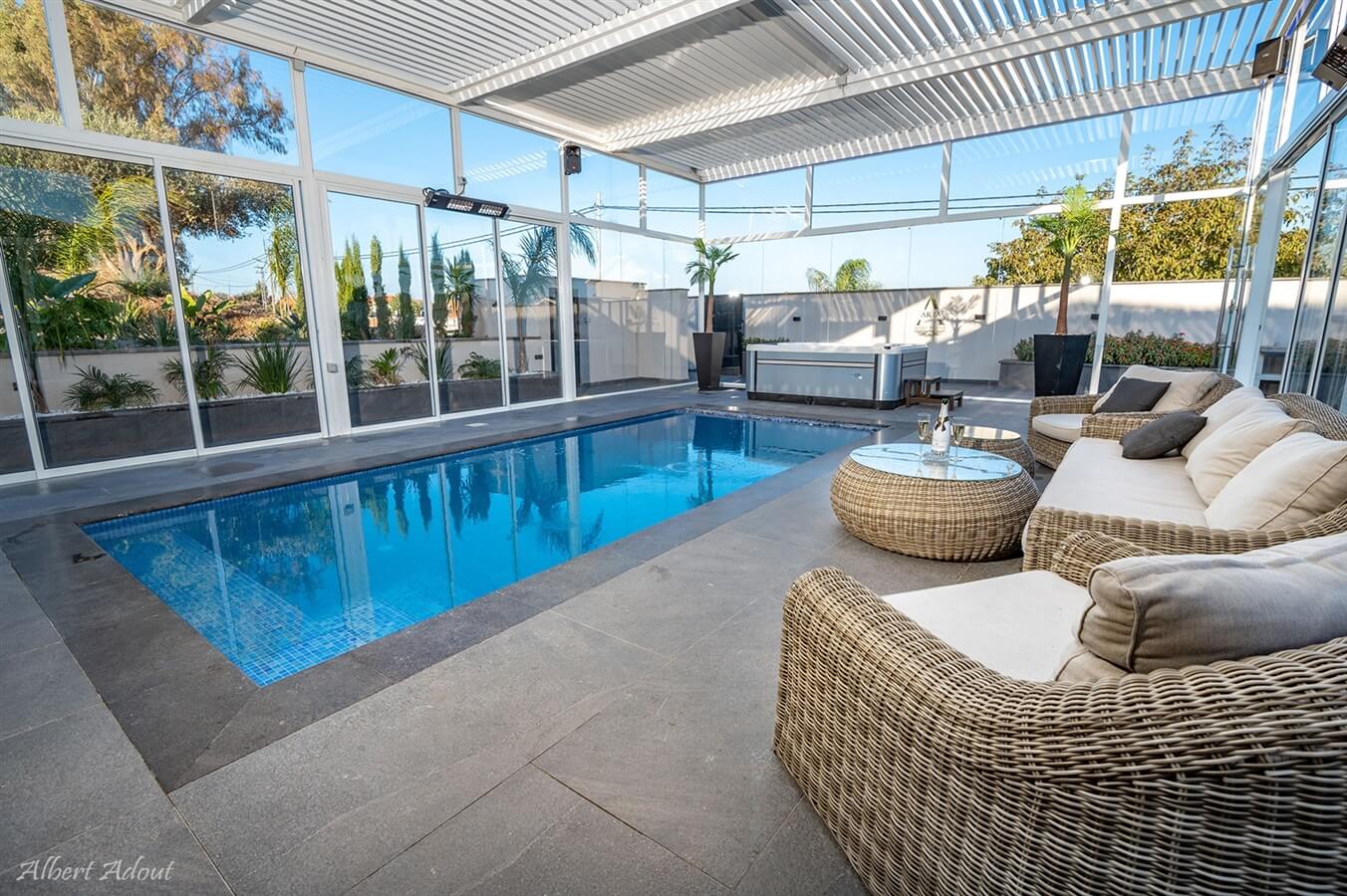 לסוויטה מתחם חוץ מקורה הכולל בריכה (המחוממת בחורף), ג'קוזי ספא, טלוויזיה ענקית (86 אינטש), ריהוט גן ופרגולה חשמלית ומסביבו חצר ירוקה ופסטורלית עם פינות ישיבה, מטבח חוץ הכולל כיריים, כיור, משטח עבודה, מעשנה חכמה ועמדת ברביקיו.
