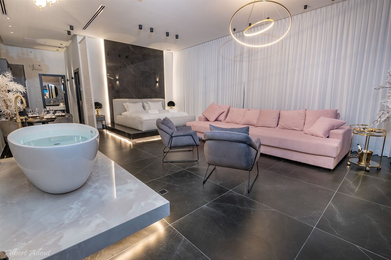 סוויטה מטריפה הכוללת עיצוב יוקרתי וייחודי בגליל העליון, בעלת חלל מרכזי וחדר שינה המתאימים לאירוח זוגות ומשפחות עד 6 איש.