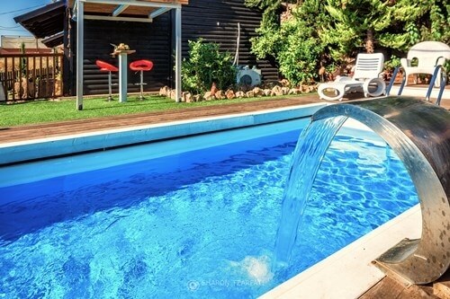 חצר המתחם גדולה ומושלמת להתרגעות ולמנוחה. בחצר בריכה, נדנדה, עמדת מנגל, מדשאה, פרחי נוי, ריהוט גינה ותאורה רומנטית לשעות הערב.