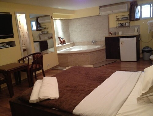 בסוויטות- מיטה זוגית, פינת ישיבה גדולה, ג'קוזי מפנק, טלווזיית פלזמה עם מערכת קולנוע ביתית, חדר רחצה ומטבחון מאובזר.