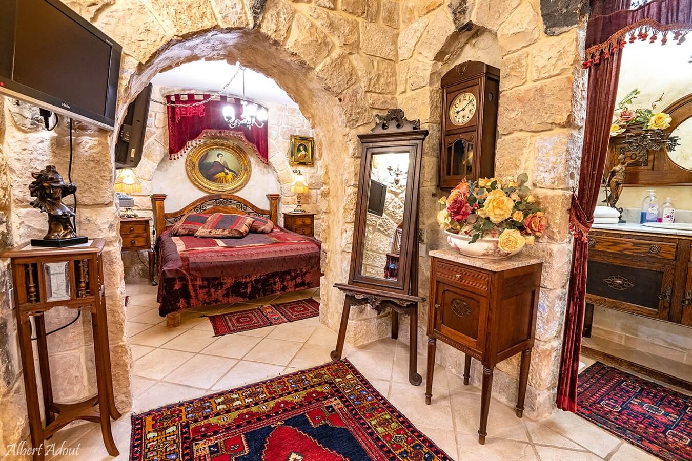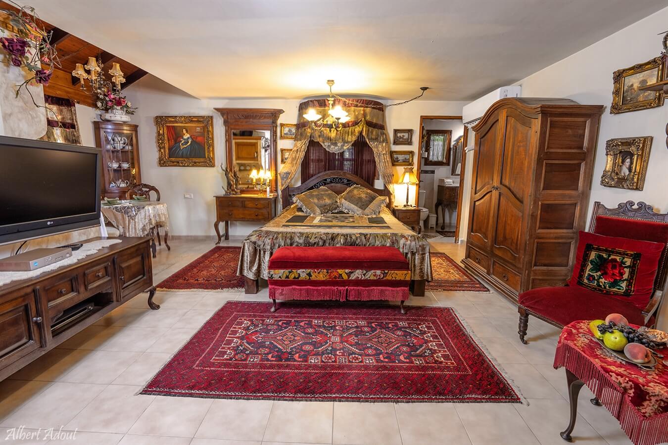 סוויטת החצר מספר 1 - מרווחת ונעימה, מעוצבת בסגנון עתיק המשרה חמימות ורומנטיקה לחדר. בסוויטה תוכלו ליהנות מ: