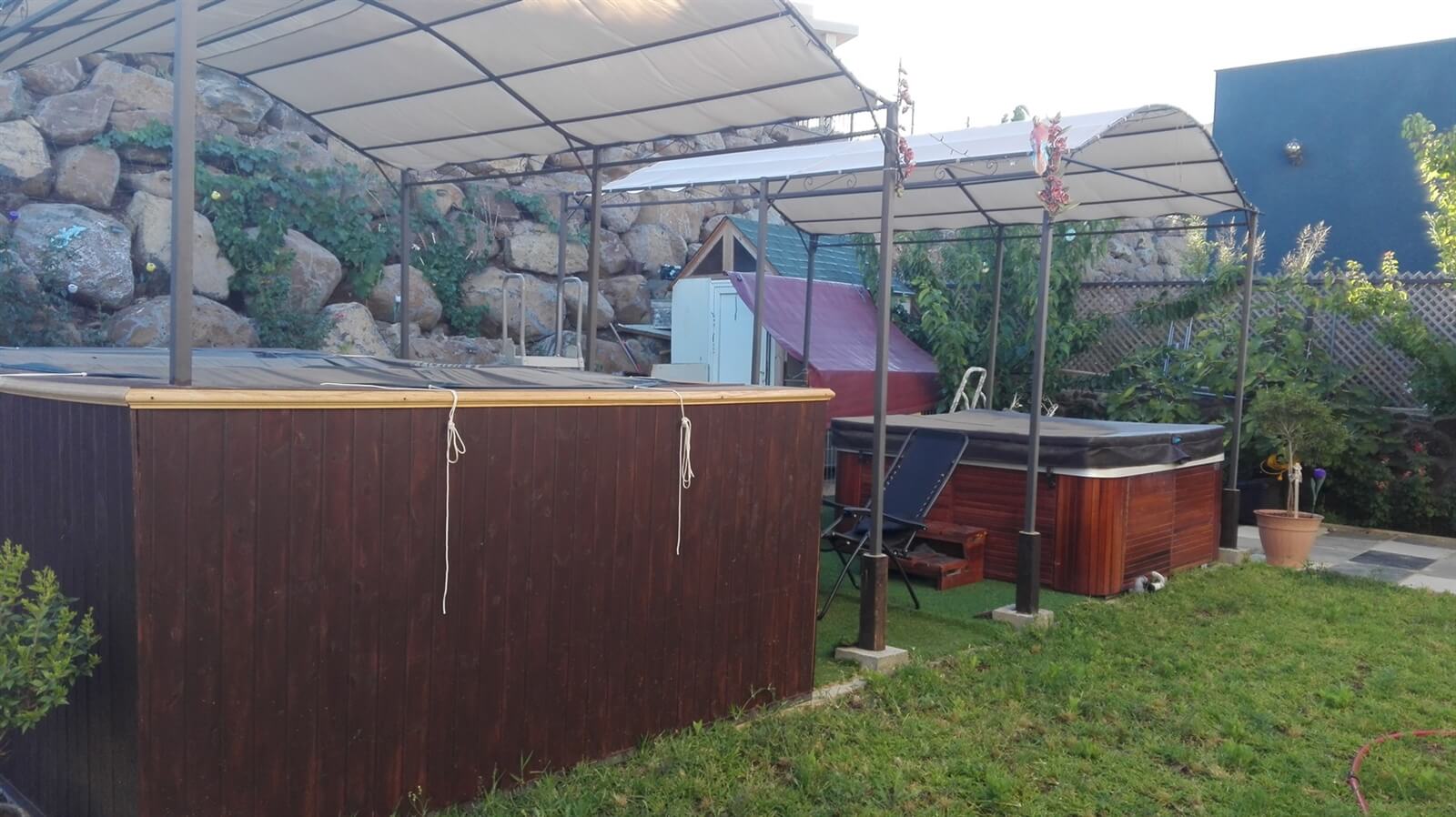 החצר הרחבה במתחם מטופחת ביותר ובה תיהנו מפינות ישיבה ומיטות שיזוף, ברביקיו גז, ג'קוזי ספא גדול ומקורה המיועד ל-7 רוחצים, בריכת דגי נוי ומפל. בעונת הקיץ תוכלו לרחוץ בבריכת השחיה שבמתחם.