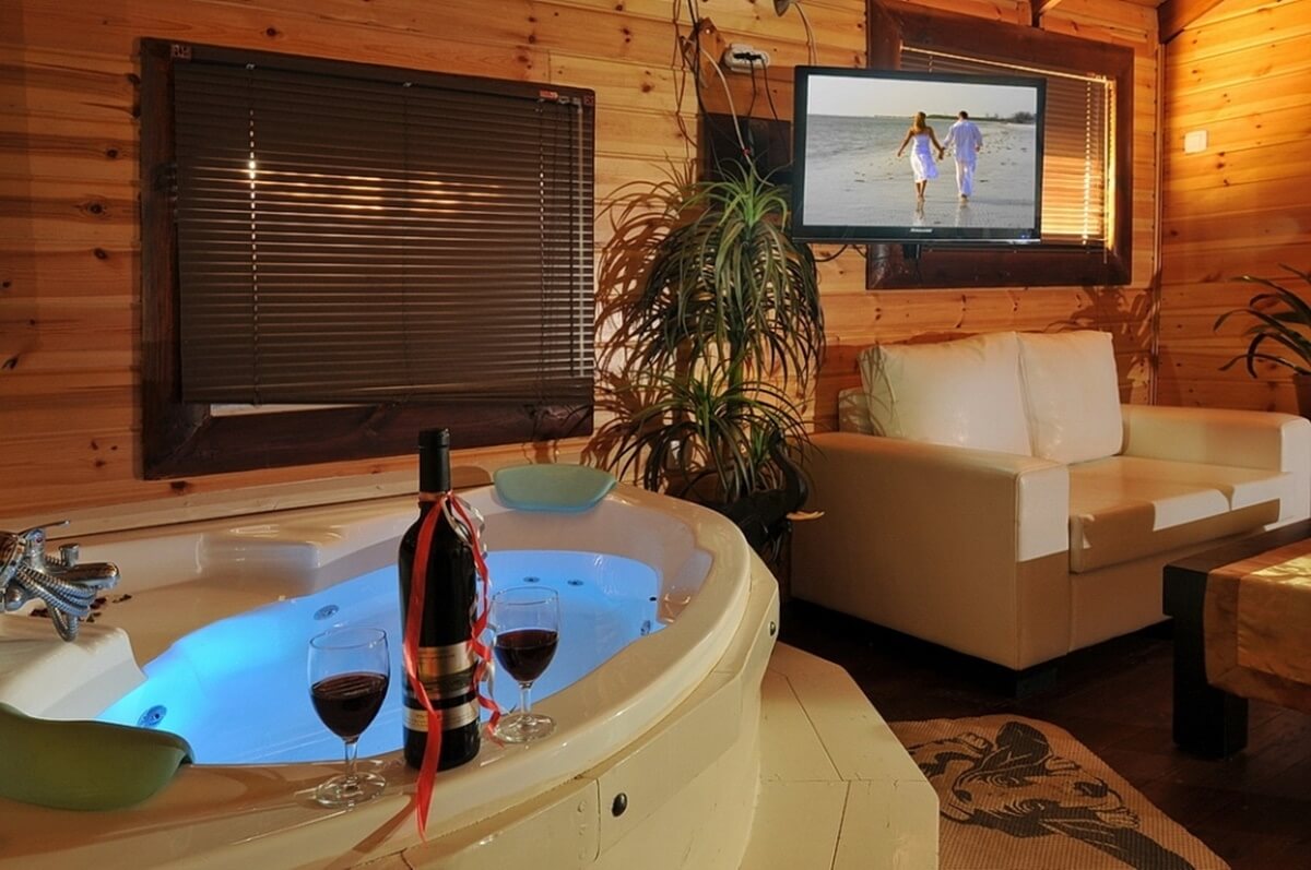 כל בקתה מעוצבת בסגנון כפרי המעניק תחושת חמימות קסומה, בנויה כחלל מרווח המרוהט בקפידה ומאובזר במיטב הציוד: מיטה זוגית ענקית לשינה ערבה, מיטות יחיד ללינת ילדים, חדר רחצה מטופח עם תמרוקים ומגבות רכות, מטבחון מאובזר להכנת ארוחות קלות במהלך החופשה, פינת קפה עשירה, שידות לאחסון, פינת ישיבה נוחה, מסך lcd עם חיבור ללווין והדובדבן שבקצפת - ג'קוזי זרמים פינתי, חמים ומפנק.