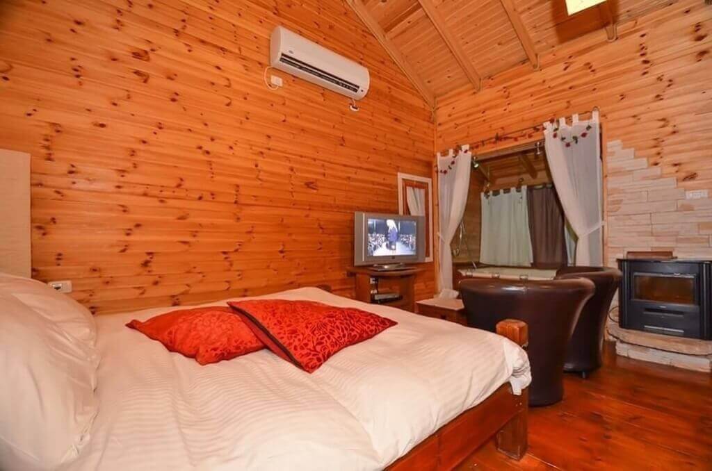 בקתת עץ ממוזגת ומעוצבת המשרה אווירה רומנטית ומיועדת לאירוח זוגי קסום.