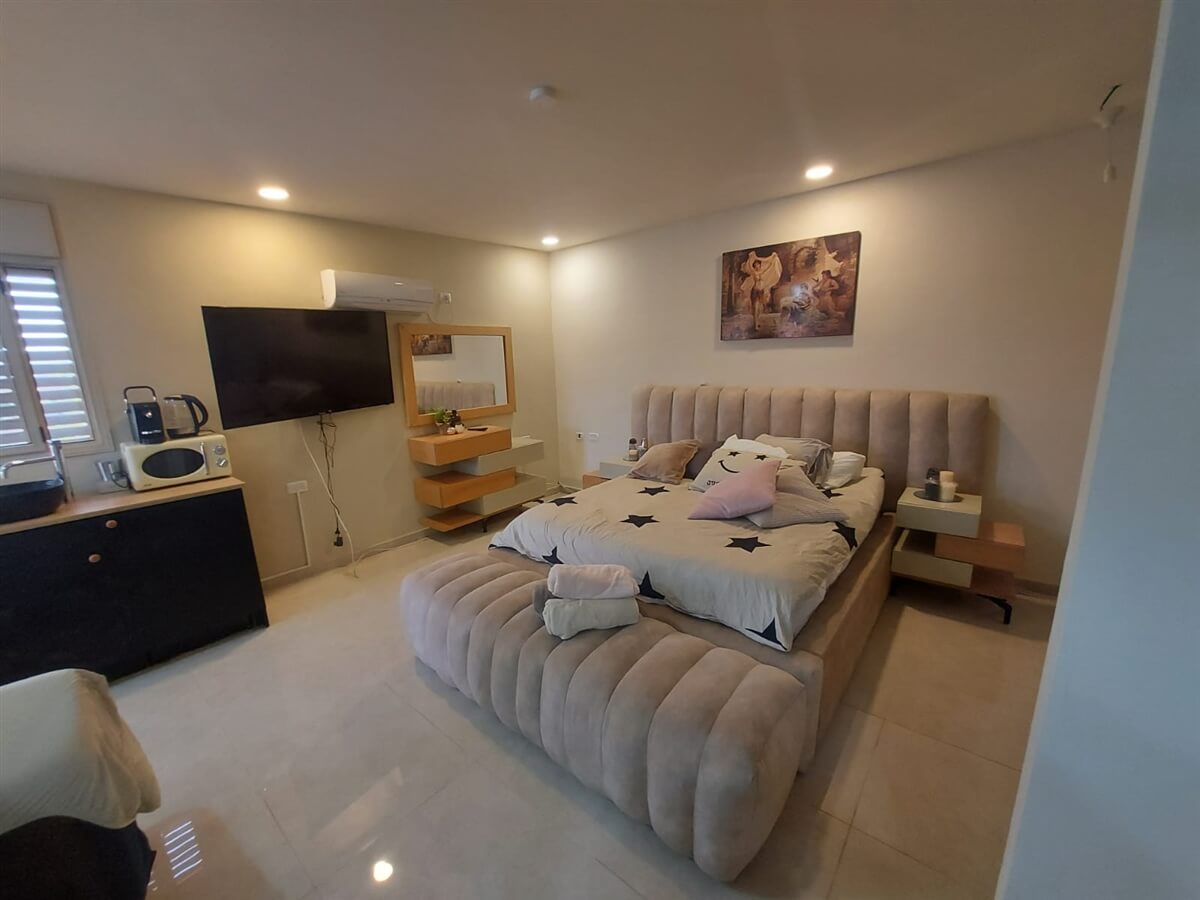 הסוויטה הגדולה מתאימה לאירוח זוג ו-4 ילדים או לחילופין ל-5 מבוגרים.הסוויטה מעוצבת כopen spcae והיא כוללת:- מיטה זוגית ענקית