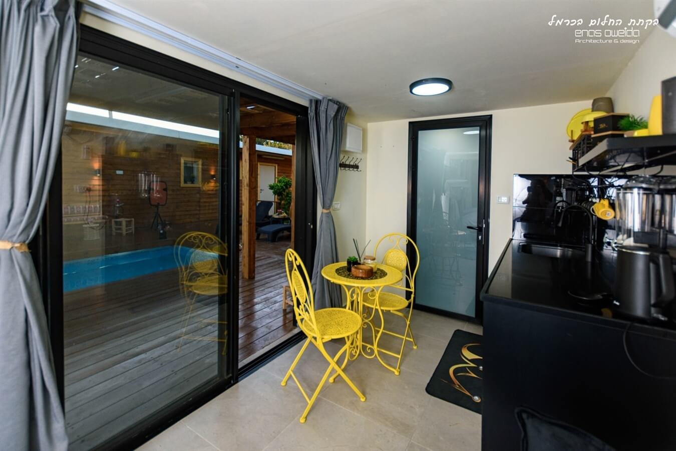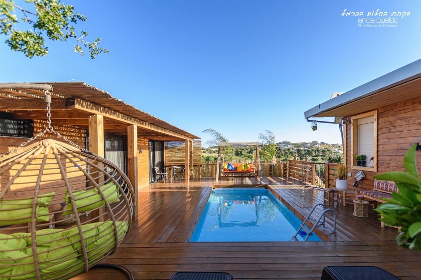 - בריכה מחוממת ומקורה עם תאורת לד פנימית ומיטות שיזוף