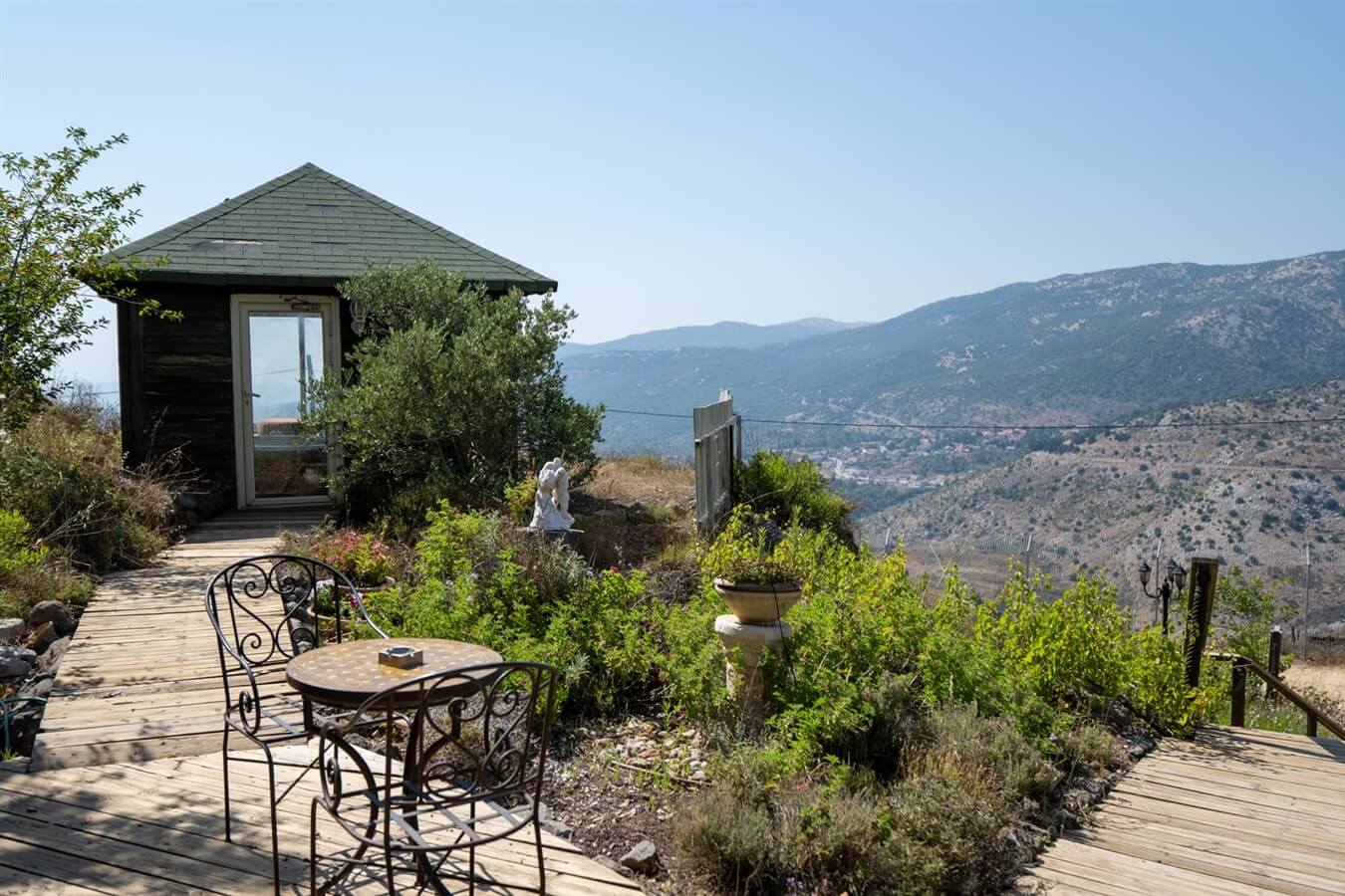 - מרפסת פרטית לכל בקתה עם פינת ישיבה המשקיפה אל נופו המדהים של הר החרמון