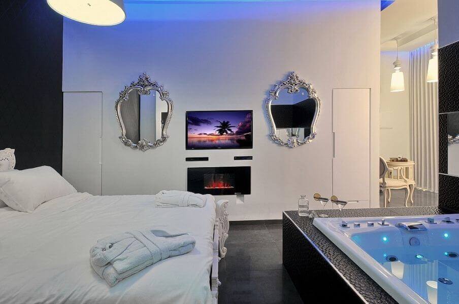 סוויטה המעוצבת בסגנון ויקטוריאני ומציעה מיטה זוגית גדולה וססגונית, תאורה לילית מרגשת ואווירה רומנטית.