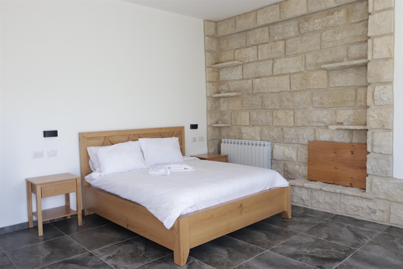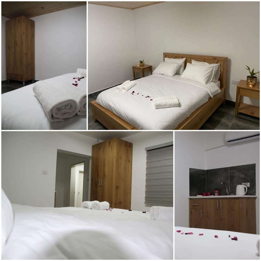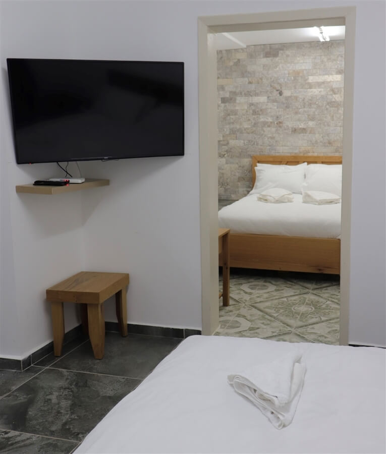 במתחם האירוח 5 סוויטות זוגיות מאובזרות ומעוצבות בקו נקי עם נגיעות של עץ ואבן.