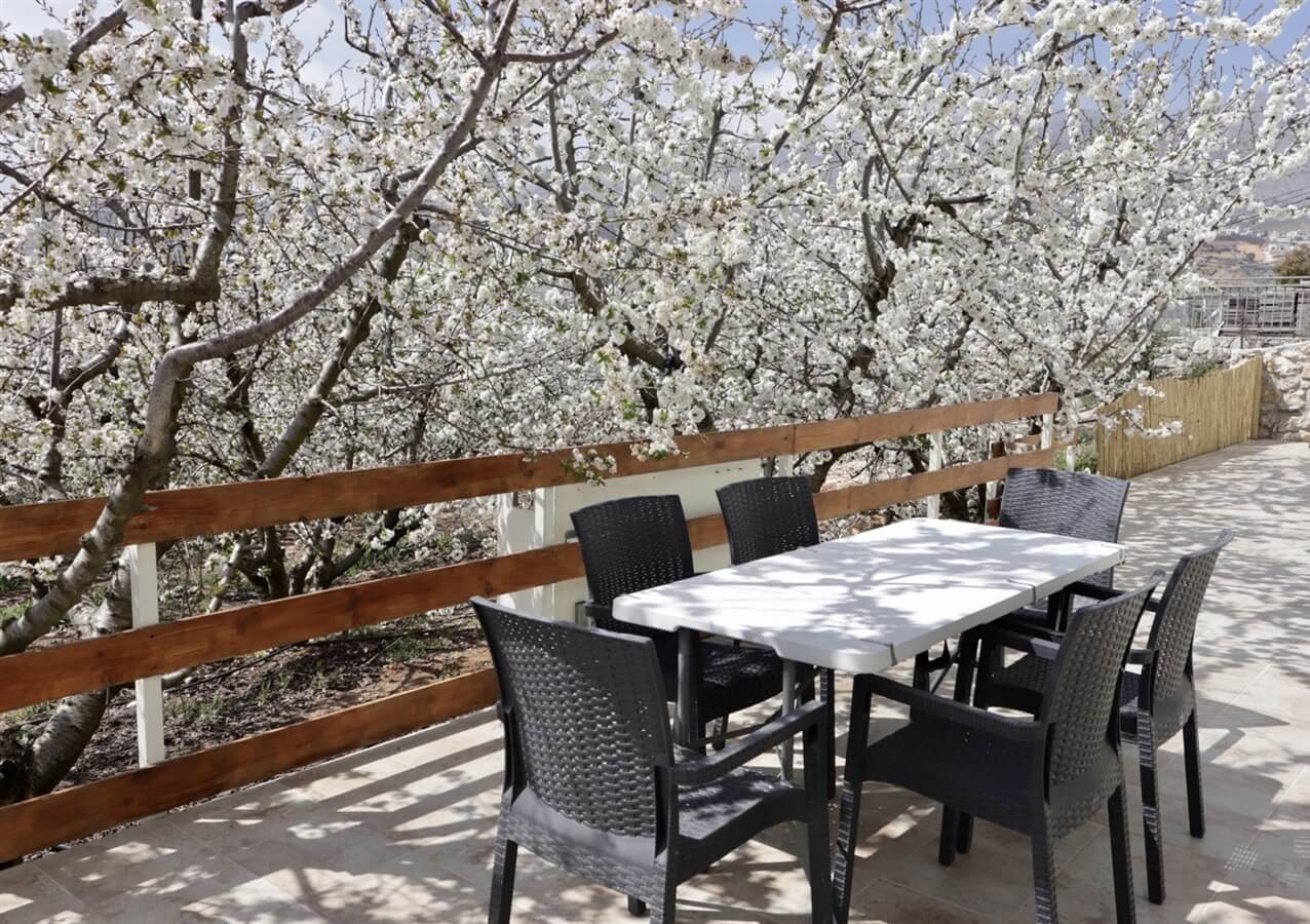 בנוסף מכל סוויטה ניתן לצאת לחצר גדולה ומשותפת עם פרגולה, מנגל ופינת ישיבה המשקיפה לנוף ההרים הקסום של רמת הגולן.
