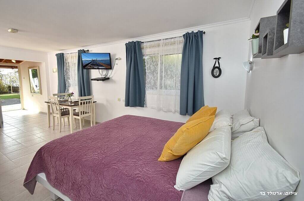 'ליאת' ו'רוני' - 2 סוויטות כפריות הבנויות כל אחת כחלל סטודיו פתוח ומיועדות לזוגות ומשפחות.בכל סוויטה:• מיטה זוגית גדולה עם מצעים מלטפים• ספה סלונית נפתחת למיטה נוספת• ארון בגדים• מסך טלוויזיה 32" בלווין• פינת אוכל• חדר רחצה עם מגבות וסבונים• מטבחון עם מיקרוגל, מקרר, קומקום ופינת קפה- פינת קפה