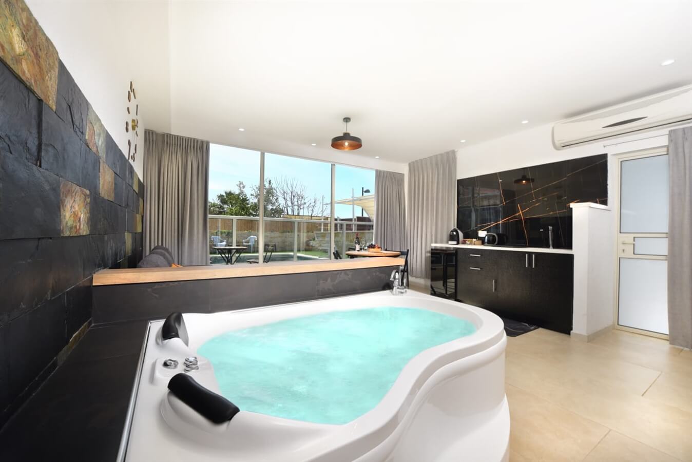 ג'קוזי זרמים, סט תחליבי אמבט, שוקולדים, מכונת אספרסו, מרפסות פאטיוסביבה מדהימה לחופשה