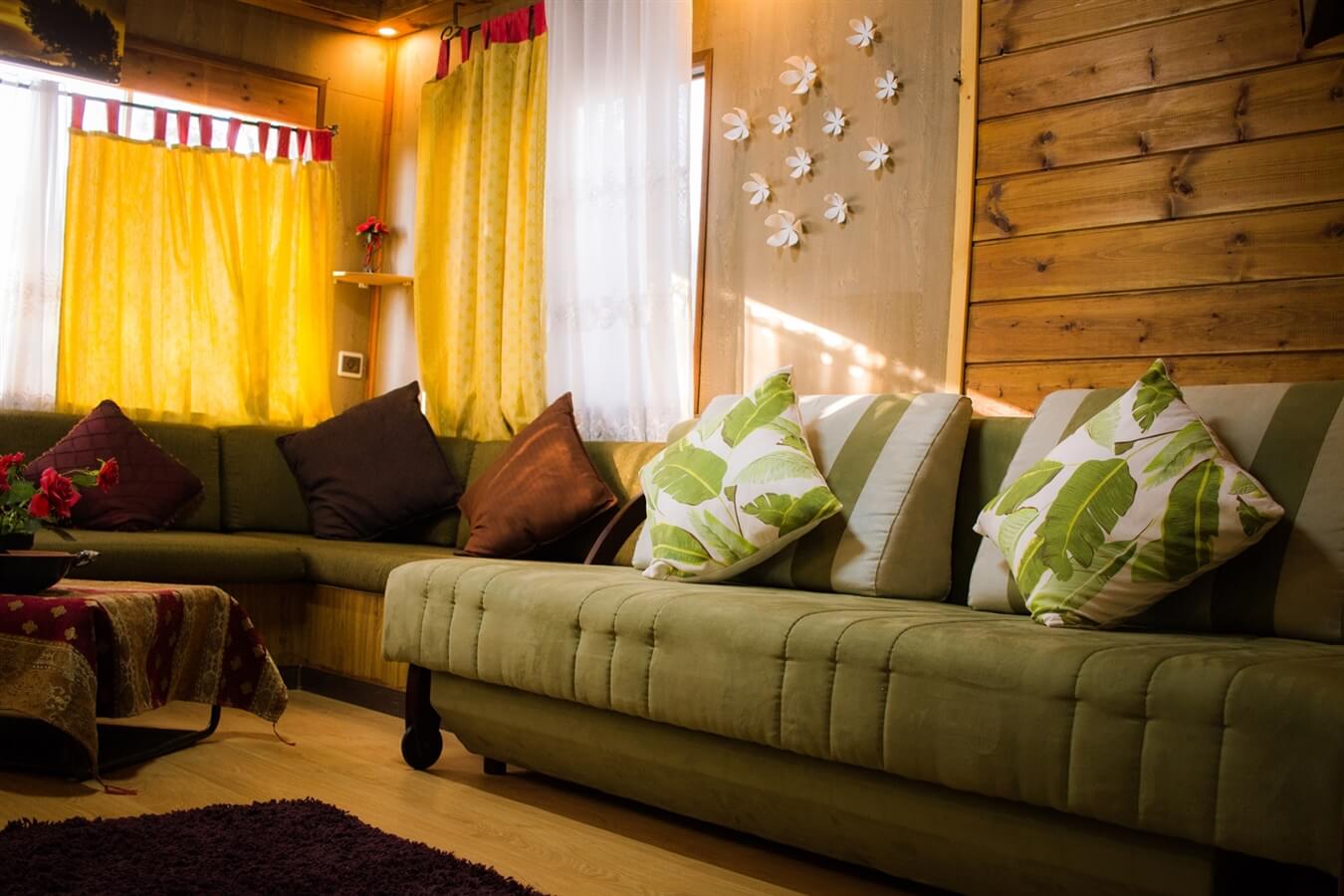 - סלון גדול עם מיטה הנפתחת למיטה זוגית עם כריות נוי