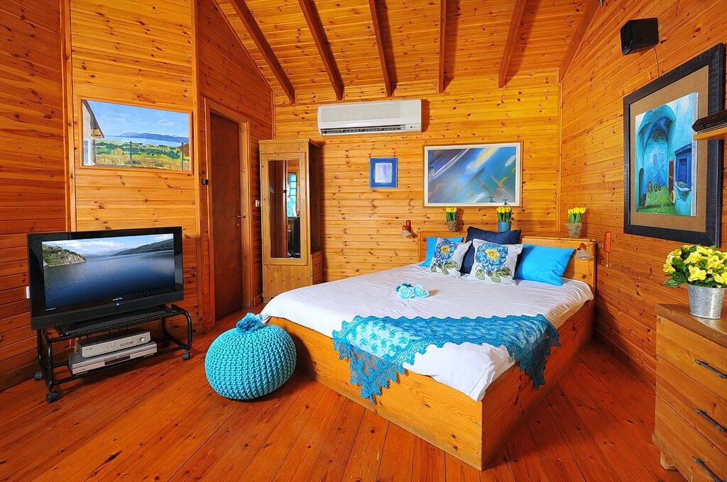 כל בקתה כוללת: מיטה זוגית מרווחת, ג'קוזי פרטי מרוצף באבן לחוויה רומנטית, טלוויזיית lcd בחיבור ללוויין, dvd ומערכת סטריאו, מטבחון מאובזר במלואו, פינת קפה עשירה, פינת אוכל, חדר רחצה מצויד במגבות וסבונים שונים ומרפסת פרטית עם פינת ישיבה המשקיפה אל הנוף הפסטורליהאורחים יהנו מפינוקים כמו סלסלת פירות, בקבוק יין, נרות ריחניים ועוד.