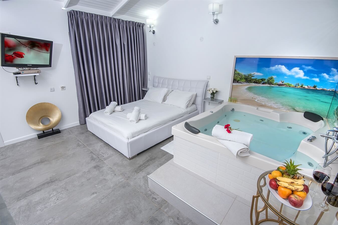 סוויטה מפנקת המציעה ג'קוזי זרמים עם נרות אווירה, מסך lcd עם חיבור ללוויין, מיטה זוגית נוחה במיוחד, פינת אוכל, מטבחון מאובזר, ערכת קפה ותה, מרפסת גן צמודה וחדר רחצה מרענן.