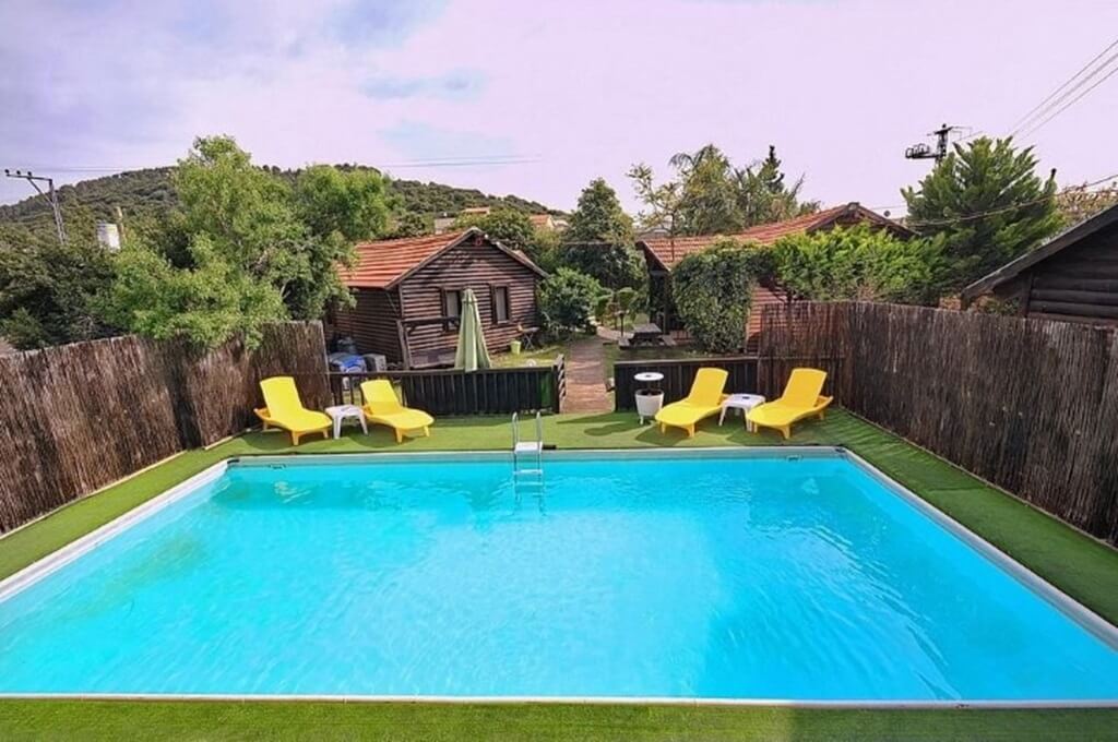 אורחי המתחם יהנו מחצר רחבת ידיים, מדשאות ירוקות, צמחי נוי פסטורליים והדובדבן שבקצפת – בריכה המחוממת בימי החורף הקרים. בנוסף, תוכלו ליהנות מעמדת מנגל מאובזרת, שולחן אוכל תחת כיפת השמיים, פינות ישיבה ומיטות שיזוף.
