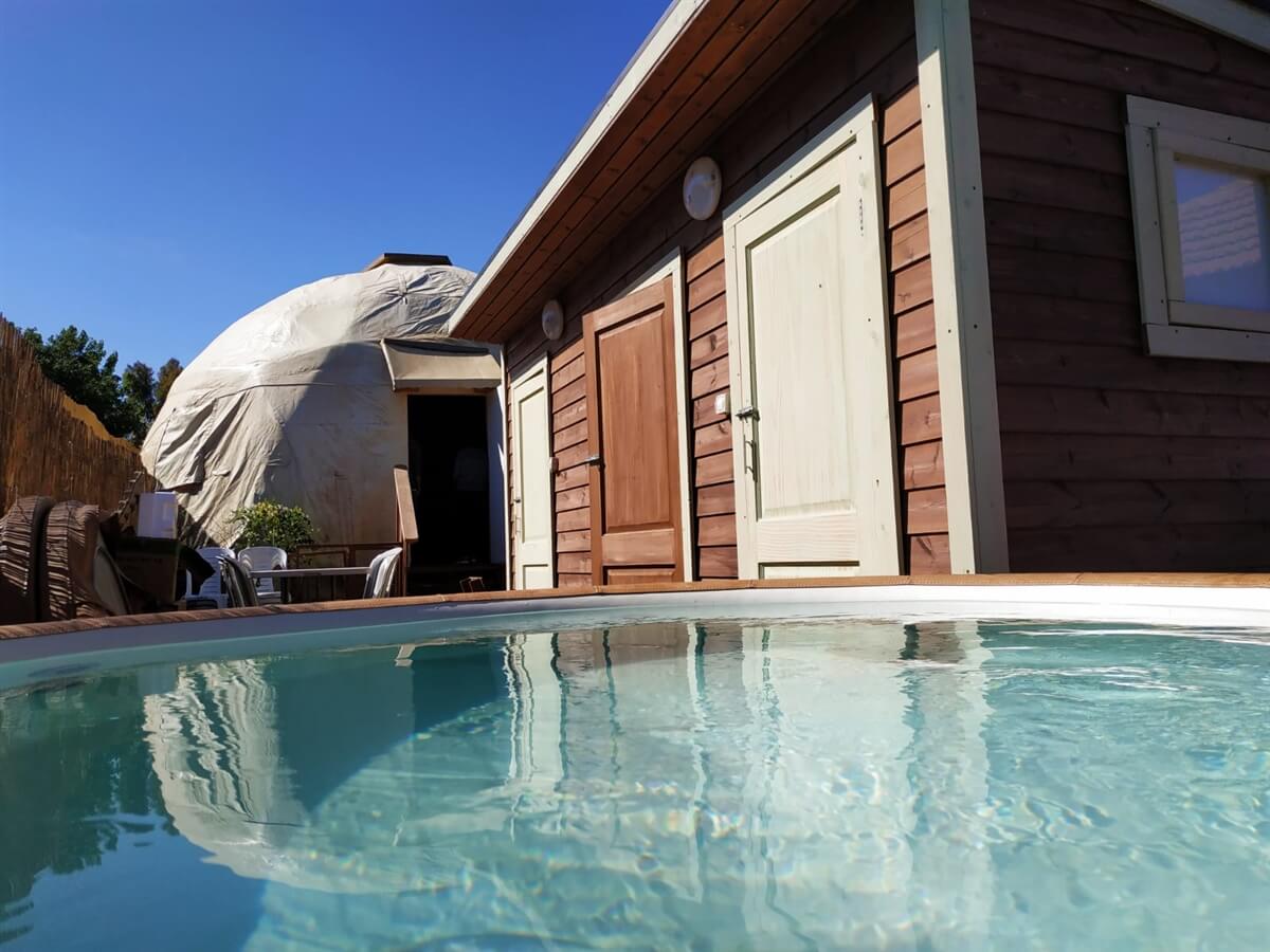 - מתחם חוץ פרטי עם בריכה המחוממת ומקורה בחורף