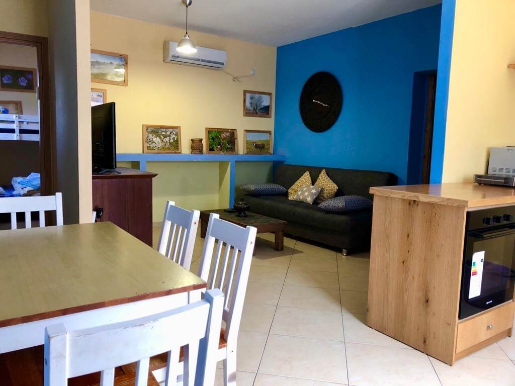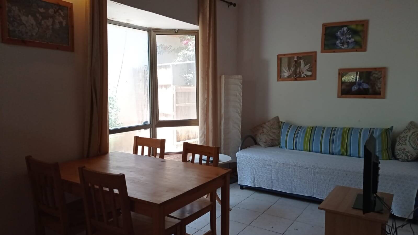 - סלון עם ספה הנפתחת למיטה וטלוויזיה חכמה בחיבור כבלים