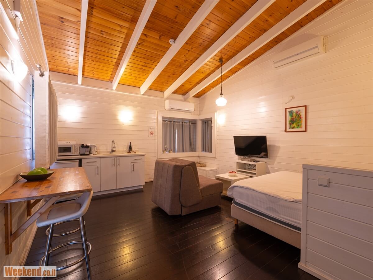 בקתה זוגית רומנטית - בקתת Open Space המתאימה לזוג או זוג + 2 וכוללת: