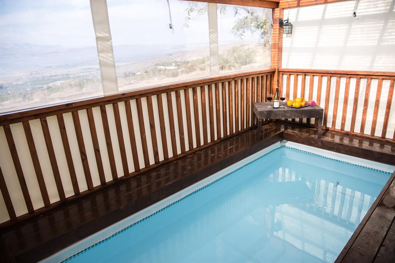 בתוספת לנוף המדהים, לשקט הכפרי ולמיקום המושלם, לכל בקתה חצר פרטית ואינטימית הכוללת בריכה (מחוממת בעונת החורף), רצפת דק יוקרתי, מיטות שיזוף ופינות ישיבה ועמדת ברביקיו.