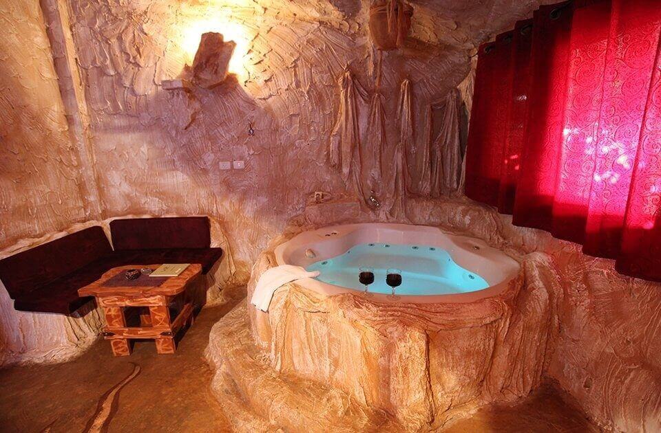 הסוויטה בנויה כמערה וכוללת מיטה זוגית, מטבחון מאובזר, טלוויזית lcd, מערכת קולנוע ביתי, מכשיר dvd וג'קוזי מרווח המשקיף לנוף מדהים ויוצר אווירה רומנטית ומיוחדת.