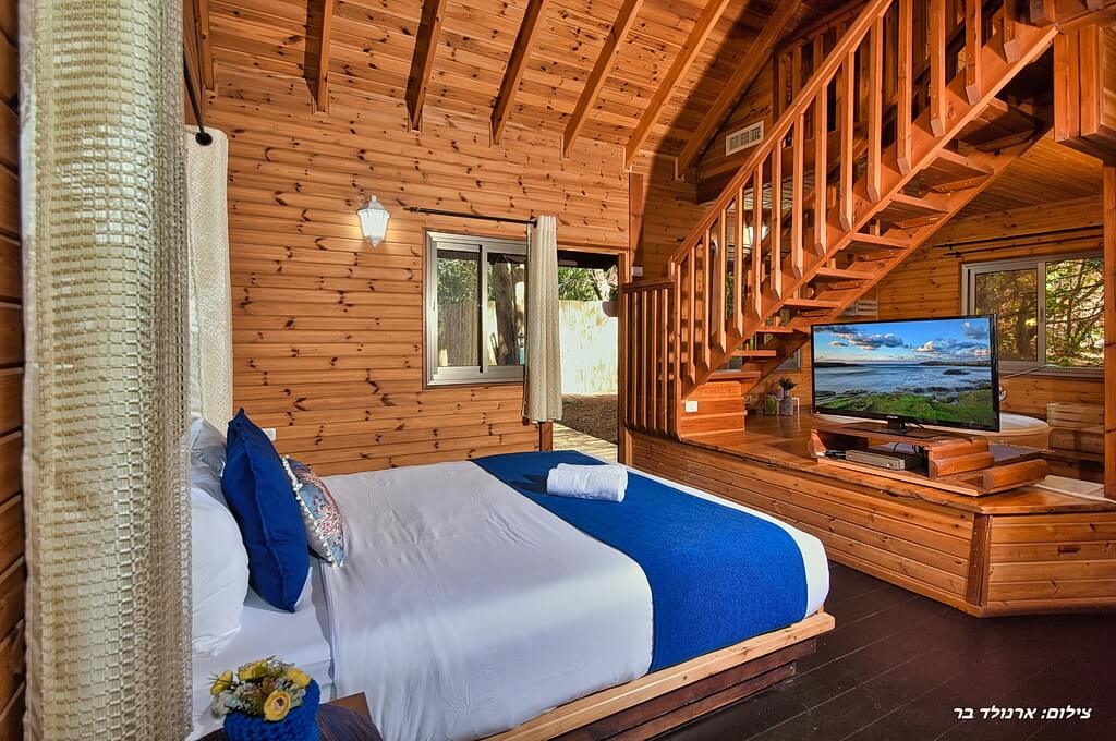 בקתת עץ גדולה ומרווחת עם מיטה זוגית, ג'קוזי זרמים מפנק, קומת גלריה ללינת ילדים, חדר רחצה מאובזר, טלוויזיה מחוברת לערוצי לוויין, חצר אינטימית עם פינת ישיבה, מטבחון מאובזר, פינת אוכל ועוד.