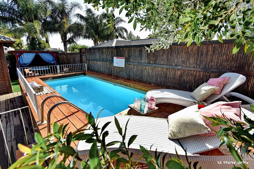 חצר פרטית עם בריכה מחוממת ומגודרת