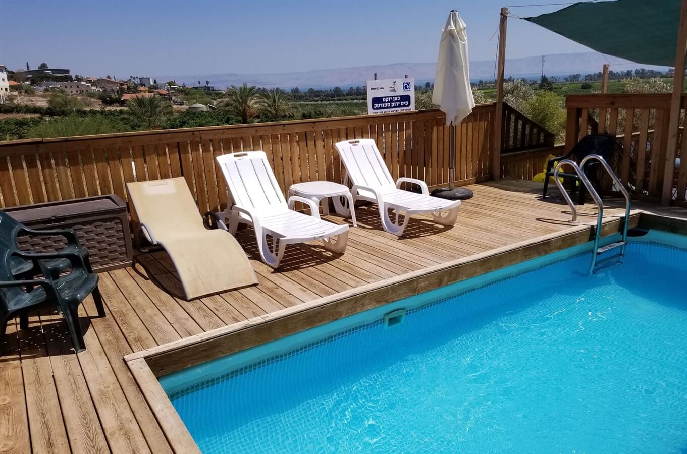 הבריכה מחוממת בחורף ולצדה גם עמדת BBQ מקצועית מאבן, ג'קוזי ספא מפנק ופינות ישיבה - והכל אל מול נוף עוצר נשימה לכנרת.
