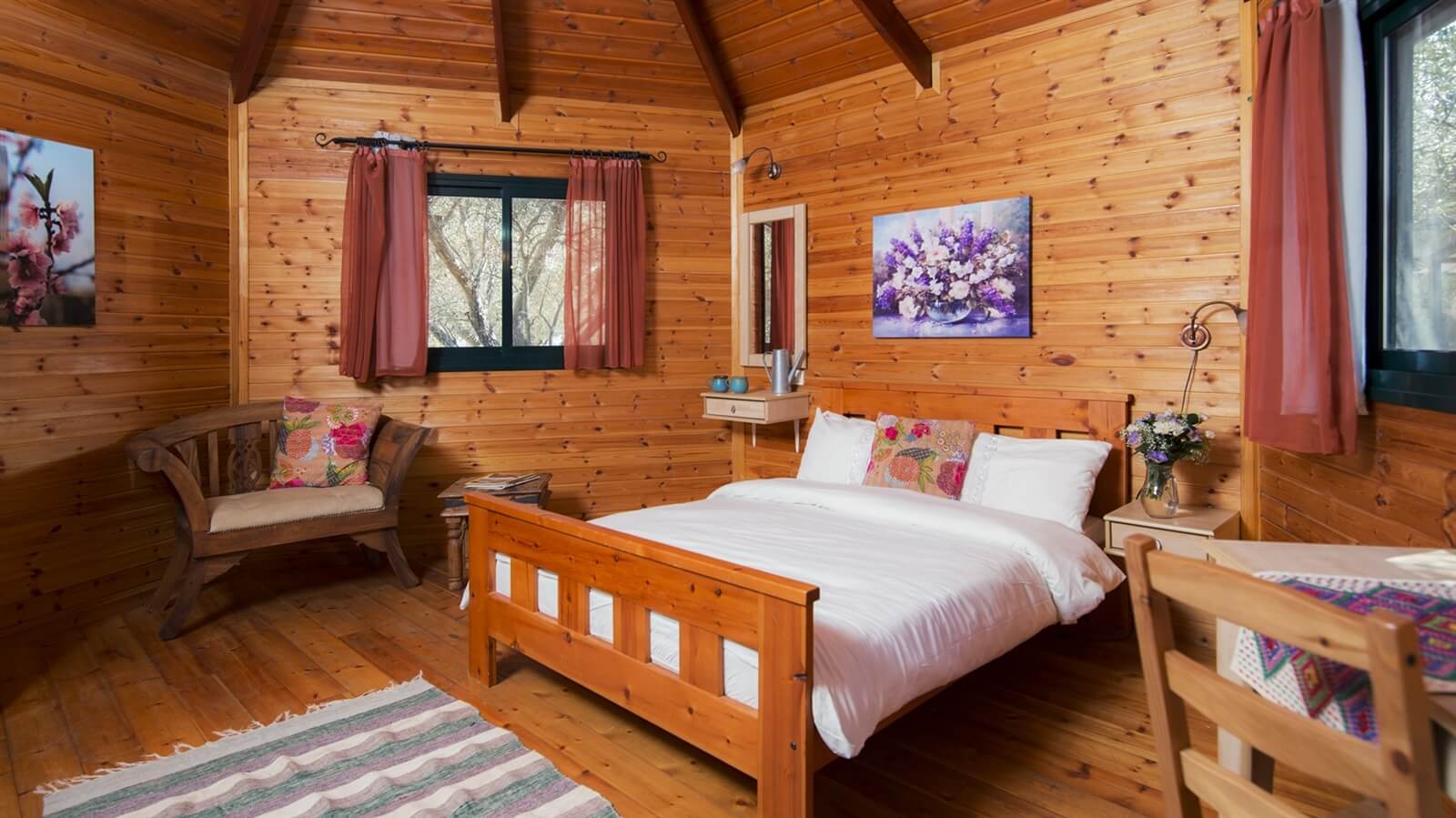 במתחם מחכות לכם בקתות עץ מאובזרות בכל טוב לאירוח זוגי או משפחתי, בכל בקתה: