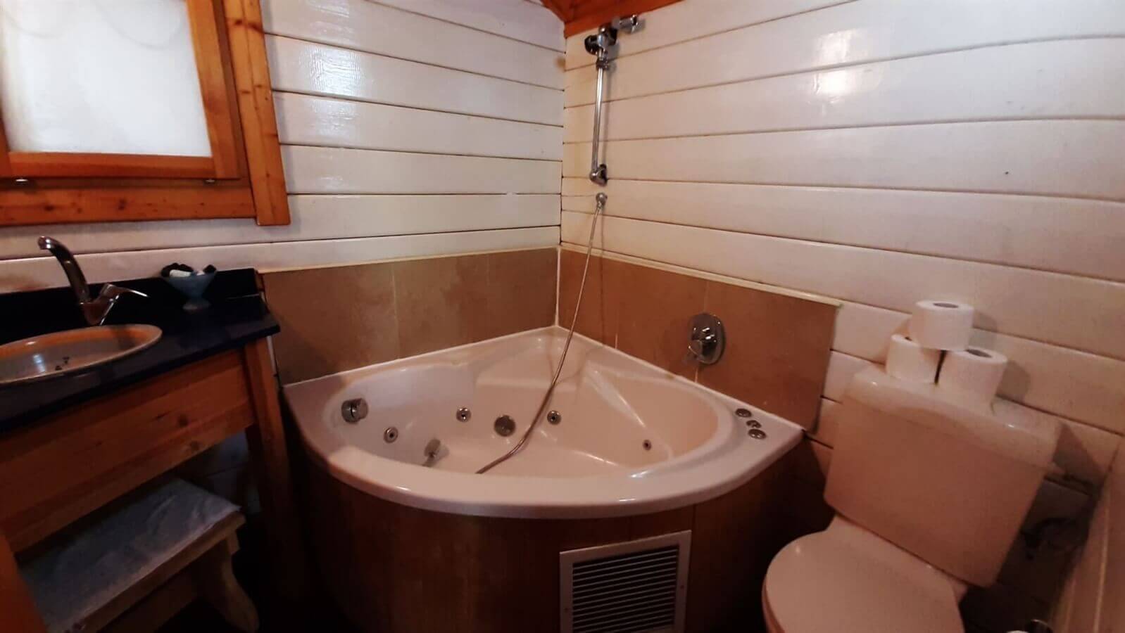 9 בקתות עץ כפריות לחופשה קסומה המתאימה למשפחות וזוגות עם אמבט ג'קוזי מפנק בחלק מהבקתות וחצר פרטית מטופחת לכל בקתה.